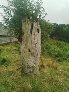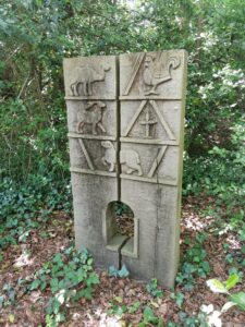LEGACY A huge hollow elm tree which had already died due to Dutch Elm disease. It has been carved with English and Norman words which have the same meanings. eg. archer (Norman) and bowman (Anglo-Saxon) to highlight the French words which since the Norman Conquest , have been absorbed into the English language.